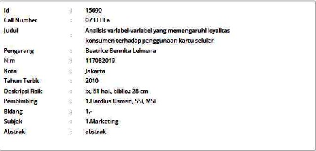 Leimena, Beatrice Bennita (2010) Analisis variabel-variabel yang memengaruhi loyalitas konsumen terhadap penggunaan kartu seluler. Informasi Detail Thesis. p. 61. ISSN 117082019