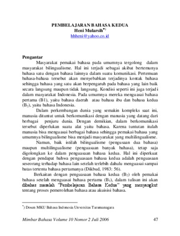 Mularsih, Heni (2006) PEMBELAJARAN BAHASA KEDUA. PEMBELAJARAN BAHASA KEDUA. pp. 1-11.