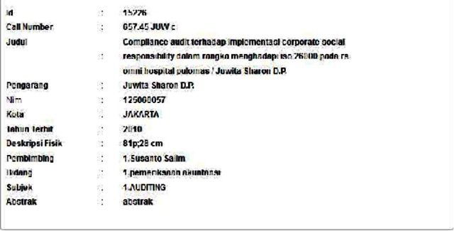 Sharon D P, Juwita (2010) Compliance audit terhadap implementasi corporate social responsibility dalam rangka menghadapi iso 26000 pada rs omni hospital pulomas. Informasi Detail Skripsi. p. 81. ISSN 125060057
