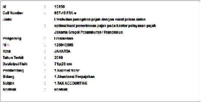 Fransiskus, Fransiskus (2010) Efektivitas penagihan pajak dengan surat paksa untuk optimalisasi penerimaan pajak pada kantor pelayanan pajak Jakarta Grogol Petamburan / Fransiskus. Informasi Detail Skripsi. p. 71. ISSN 125040565