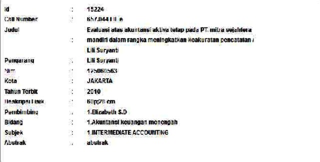 Suryanti, Lili (2010) Evaluasi atas akuntansi aktiva tetap pada PT. mitra sejahtera mandiri dalam rangka meningkatkan keakuratan pencatatan. Informasi Detail Skripsi. p. 60. ISSN 125060563