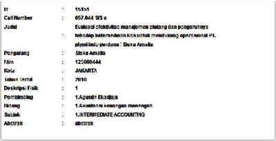 Amalia, Siska (2010) Evaluasi efektivitas manajemen piutang dan pengaruhnya tehadap ketersediaan kas untuk mendukung operasional PT. plymilindo perdana. Informasi Detail Skripsi. ISSN 125060444