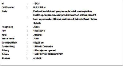 Sutarto, Julius (2010) Evaluasi jumlah kasir yang tersedia untuk meningkatkan kualitas pelayanan melalui pendekatan teori antrian pada PT. hero supermarket, tbk mal puri indah di Jakarta Barat. Informasi Detail Skripsi. p. 85. ISSN 115040313