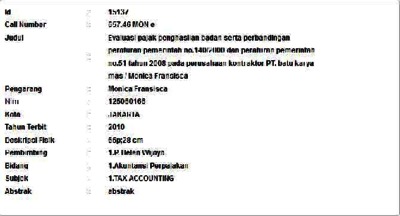 Fransisca, Monica (2010) Evaluasi pajak penghasilan badan serta perbandingan peraturan pemerintah no.140/2000 dan peraturan pemerintah no.51 tahun 2008 pada perusahaan kontraktor PT. batu karya mas. Informasi Detail Skripsi. p. 65. ISSN 125060166