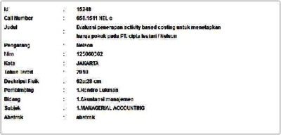 Nelson, Nelson (2010) Evaluasi penerapan activity based costing untuk menetapkan harga pokok pada PT. cipta lestari. Informasi Detail Skripsi. p. 62. ISSN 125060362