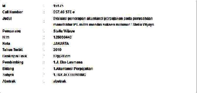 Wijaya, Stella (2010) Evaluasi penerapan akuntansi perpajakan pada perusahaan manufaktur PT. mitra mandiri sukses makmur. Informasi Detail Skripsi. p. 62. ISSN 125060449