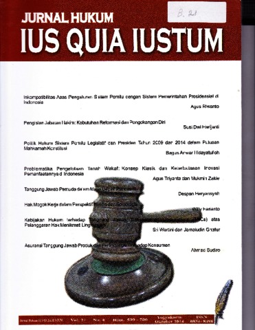 Sudiro, Amad (2014) Asuransi Tanggung Jawab Produk Dan Perlindungan Terhadap Konsumen. IUS QUIA UISTUM, 21 (4). ISSN 0854 - 8498