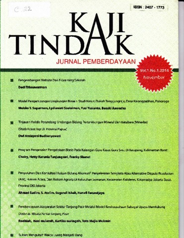 Sudiro, Amad (2014) Penyuluhan dan Konsultasi Hukum Bidang Alternatif Penyelesaian Sengketa Atau Alternative Dispute Resolution (ADR), Hukum Acara, dan Hukum Agraria di Kelurahan Semanan, Kecamatan Kalideres, Kota Madya Jakarta Barat. Kaji Tindak, 1 (1). ISSN 2407 - 1773