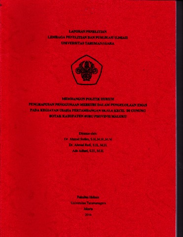 Sudiro, Amad (2016) Membangun Politik Hukum Penghapusan Penggunaan Merkuri Dalam Pengelolaan Emas Pada Kegiatan Usaha Pertambangan Skala Kecil. Di Gunung Botak Kabupaten Buru Provinsi Maluku. Puskom.