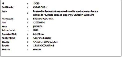 Suhendra, Christian (2010) Evaluasi terhadap pelaksanaan kewajiban pajak pertambahan nilai pada PT. gloria perdana property. Informasi Detail Skripsi. p. 64. ISSN 125030164