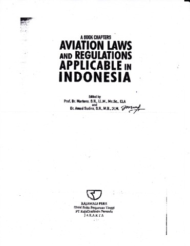 Sudiro, Amad Aviation Laws And Regulation Applicable In Indonesia. Puskom.