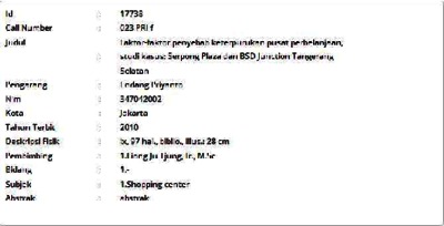 Priyanto, Endang (2010) Faktor-faktor penyebab keterpurukan pusat perbelanjaan, studi kasus: Serpong Plaza dan BSD Junction Tangerang Selatan. Masters thesis, Universitas Tarumanagara.