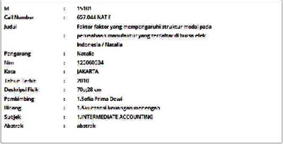 Natalia, Natalia (2010) Faktor-Faktor yang Mempengaruhi Struktur Modal pada Perusahaan Manufaktur yang Terdaftar di Bursa Efek Indonesia. Skripsi thesis, Universitas Tarumanagara.