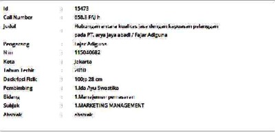 Adiguna, Fajar (2010) Hubungan antara Kualitas Jasa dengan Kepuasan Pelanggan pada PT. Arya Jaya Abadi. Skripsi thesis, Universitas Tarumanagara.