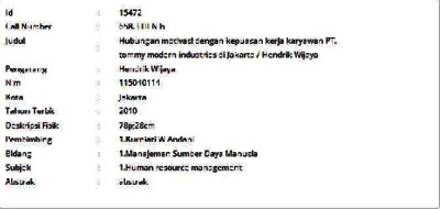 Wijaya, Hendrik (2010) Hubungan Motivasi dengan Kepuasan Kerja Karyawan PT. Tommy Modern Industries di Jakarta. Skripsi thesis, Universitas Tarumanagara.
