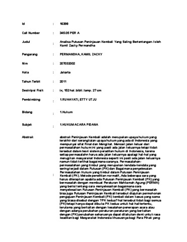 KAMIL ZACKY, PERMANDHA Analisa Putusan Peninjauan Kembali Yang Saling Bertentangan / oleh Kamil Zacky Permandha. skripsi.