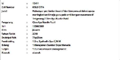Nurdin Putri, Citra Ayu (2010) Hubungan Pemberian Insentif dan Kompensasi dalam Upaya Meningkatkan Kinerja Guru pada SMK Bangun Nusantara di Tangerang. Skripsi thesis, Universitas Tarumanagara.