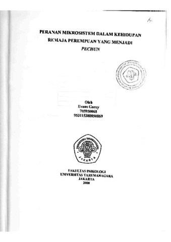 GAREY, EVANS (2000) PERANAN MIKROSISTEM DALAM KEHIDUPAN REMAJA PEREMPUAN YANG MENJADI PECHUN. Skripsi thesis, Universitas Tarumanegara.