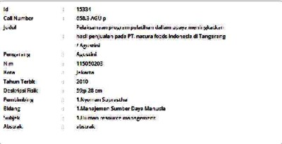 Agustini, Agustini (2010) Pelaksanaan Program Pelatihan dalam Upaya Meningkatkan Hasil Penjualan pada PT. Natura Foods Indonesia di Tangerang. Skripsi thesis, Universitas Tarumanagara.