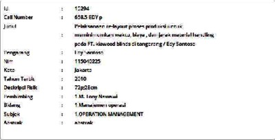 Santoso, Edy (2010) Pelaksanaan Re-layout Proses Produksi untuk Meminimumkan Waktu, Biaya, dan Jarak Material Handling pada PT. Kiawood Blinds di Tangerang. Skripsi thesis, Universitas Tarumanagara.