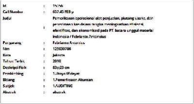 Antonius, Febrianto (2010) Pemeriksaan Operasional Alat Penjualan, Piutang Usaha, dan Penerimaan Kas dalam Rangka Meningkatkan Efisiensi, Efektifitas, dan Ekonomisasi pada PT. Batara Unggul Material Indonesia. Skripsi thesis, Universitas Tarumanagara.