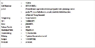 Susanti, Susy (2010) Pemeriksaan Operasional atas Penjualan dan Piutang Usaha pada PT. Duta Fuji Electric untuk Menilai Efektivitas dan Efisiensi. Skripsi thesis, Universitas Tarumanagara.