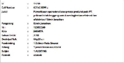 Jonathan, Edwin (2010) Pemeriksaan Operasional atas Proses Produksi pada PT. Policoat Indah Langgeng untuk Meningkatkan Efisiensi dan Efektivitas. Skripsi thesis, Universitas Tarumanagara.