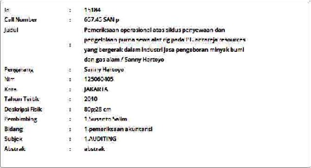 Hartoyo, Sanny (2010) Pemeriksaan Operasional atas Siklus Penyewaan dan Pengelolaan Purna Sewa Alat Rig pada PT. Antareja Resources yang Bergerak dalam Industri Jasa Pengeboran Minyak Bumi dan Gas Alam. Skripsi thesis, Universitas Tarumanagara.