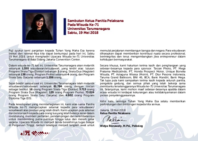UNTAR, WISUDA Sambutan Wisuda Untar ke 71. Buku Wisuda Untar ke 71.