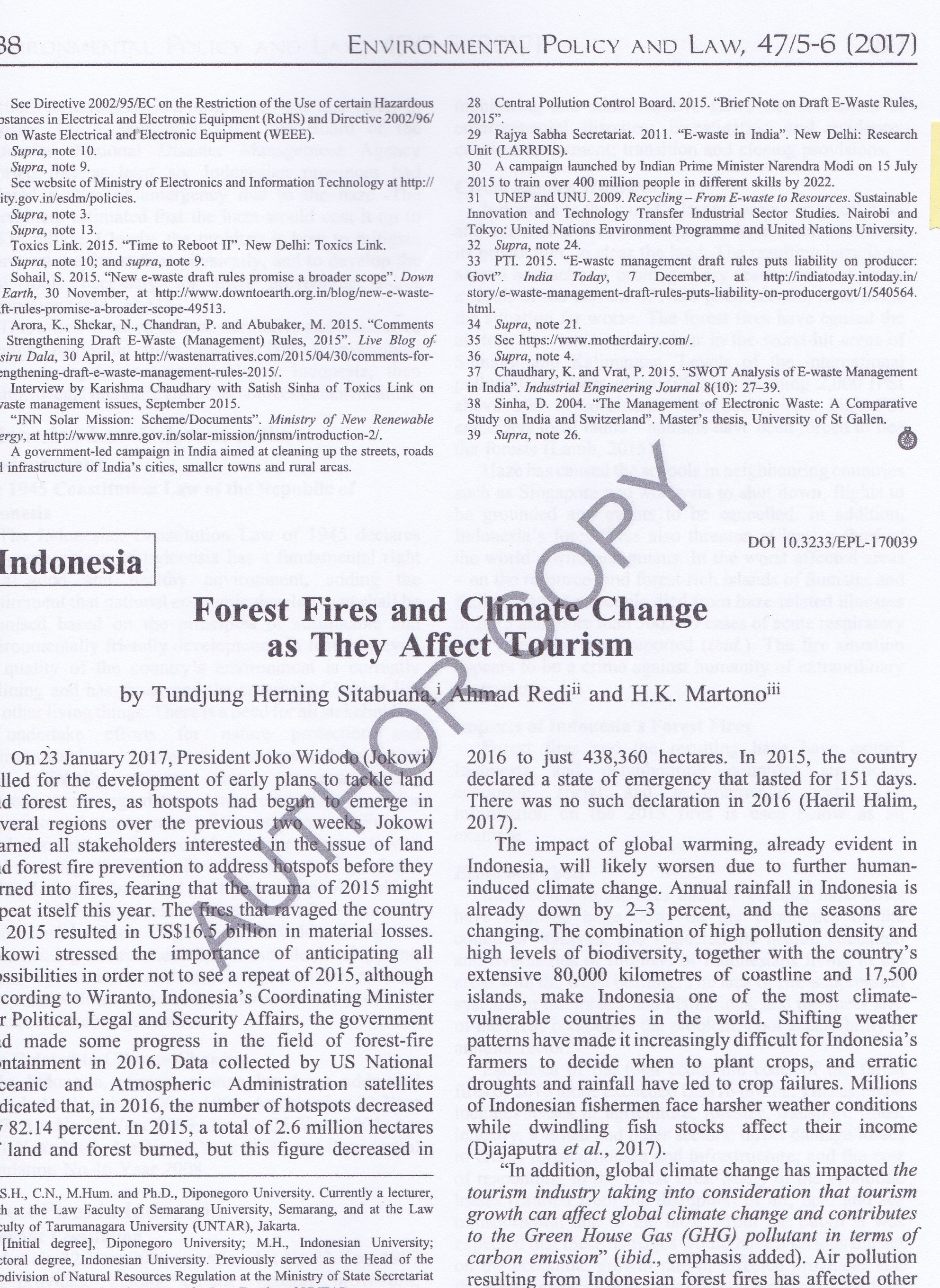 Redi, Ahmad Forest Fires and Climate Change as They Affect Tourism. In: Enviromental Policy and LAW. Universitas Tarumanagara.