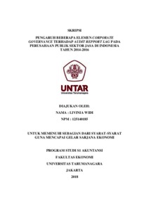 Widi, Liviana (2018) Pengaruh beberapa elemen corporate governance terhadap audit repport lag pada perusahaan publik sektor jasa di Indonesia tahun 2014-2016/Livinia Widi. Skripsi thesis, Universitas Tarumanagara.