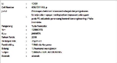 Fransiska, Yulia (2010) Penerapan Balanced Scorecard sebagai Alat Pengukuran Kinerja dalam Upaya Meningkatkan Kepuasan Pelanggan pada PT. Solusindo Perancang Kontrol dan Engineering. Skripsi thesis, Universitas Tarumanagara.