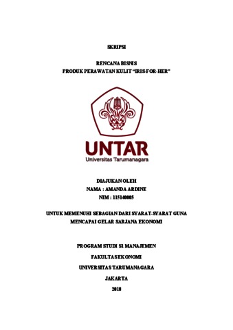 Ardine, Amanda (2018) Rencana bisnis produk perawatan kulit (IRIS-FOR-HER)/Amanda Ardine. Skripsi thesis, Universitas Tarumanagara.