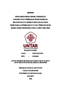 Susanto, Aziz (2018) Pengaruh mekanisme corporate governance terhadap kemungkinan kecurangan laporan keuangan pada perusahaan perbankan yang terdaftar di BEI tahun 2014-2016/Aziz Susanto. Skripsi thesis, Universitas Tarumanagara.