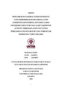 Karina, Karina (2018) Pengaruh managerial overconfidence yang dimoderasi oleh strong audit committee monitoring, multiple large ownership structure dan audit committee activity terhadap audit fee untuk perusahaan manufaktur yang terdaftar di BEI pada tahun 2014-2016/Karina. Skripsi thesis, Universitas Tarumanagara.