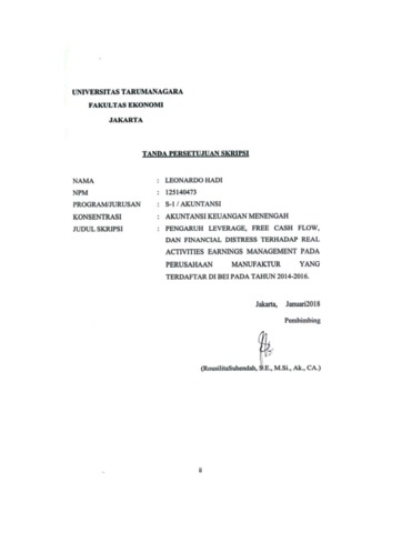 Hadi, Leonardo (2018) Pengaruh leverage, free cash flow, dan financial distress terhadap real activities earning management pada perusahaan manufaktur yang terdaftar di BEI pada tahun 2014-2016/Leonardo Hadi. Skripsi thesis, Universitas Tarumanagara.