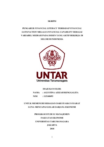 Renggalita, Agustina Azizah (2018) Pengaruh financial literacy terhadap financial satisfaction melalui financial capability sebagai variabel mediasi pada dosen yang aktif bekerja di seluruh indonesia./Agustina Azizah Renggalita. Skripsi thesis, Universitas Tarumanagara.