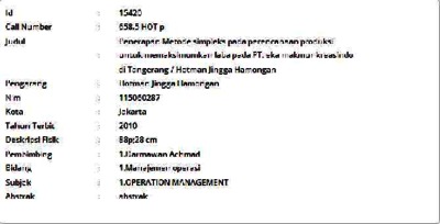 Hamongan, Hotman Jingga (2010) Penerapan Metode Simpleks pada Perencanaan Produksi untuk Memaksimumkan Laba pada PT. Eka Makmur Kreasindo di Tangerang. Skripsi thesis, Universitas Tarumanagara.