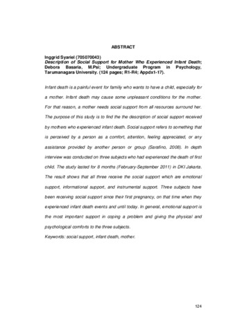Syariel, Inggrid (2011) Gambaran Dukungan Sosial Pada Ibu Yang Pernah Menghadapi Infant Death. Skripsi thesis, Universitas Tarumanagara.