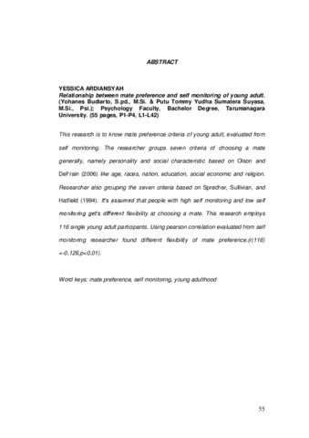 Penelitian ini bertujuan untuk mengetahui kriteria-kriteria mate preference yang diinginkan oleh individu dewasa muda ditinjau dari self monitoring. Peneliti mengelompokkan tujuh kriteria pemilihan pasangan yang pada umumnya yaitu berdasarkan kepribadian dan karakteristik sosial menurut Olson dan DeFrain (2006), seperti usia, ras, suku bangsa, pendidikan, sosial ekonomi, dan agama. Peneliti juga mengelompokkan tujuh kriteria tersebut berdasarkan Sprecher, Sullivan, dan Hatfield (1994). Diasumsikan individu yang memiliki self monitoring tinggi dan rendah menghasilkan fleksibilitas pemilihan pasangan yang berbeda. Penelitian ini menggunakan 116 partisipan dewasa muda yang belum menikah. Dengan menggunakan Pearson Correlation, peneliti menemukan adanya perbedaan yang signifikan dari fleksibilitas mate preference ditinjau dari self monitoring (r(116) = -0,126, p < 0,01)