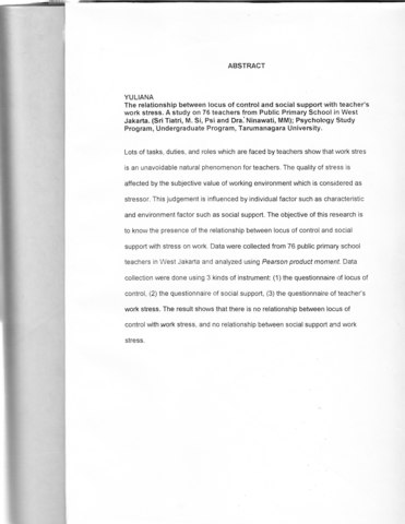 Yuliana, Yuliana (2002) Hubungan Locus Of Control, Dukungan Sosial Dengan Stress Kerja Pada Guru SDN. Skripsi thesis, Universitas Tarumanagara.