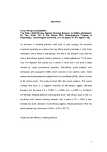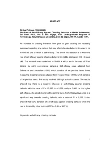 Philipus, Cintya (2013) Peranan Self-Efficacy Terhadap Cheating Behavior Pada Remaja Madya. Skripsi thesis, Universitas Tarumanagara.
