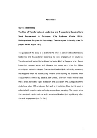 Garvin, Garvin (2013) Peran Gaya Kepemimpinan Transformasional Dan Transaksional Terhadap Keterikatan Kerja Karyawan. Skripsi thesis, Universitas Tarumanagara.