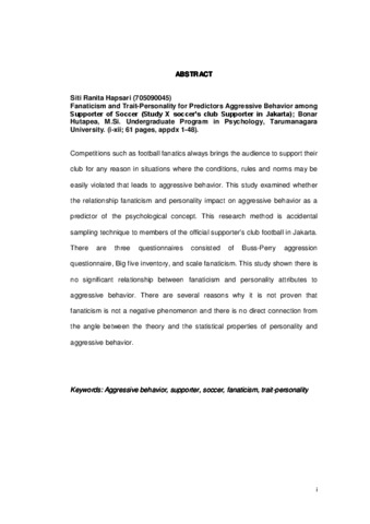 Ranita, Siti (2013) Fanatisme Dan Sifat Kepribadian Sebagai Prediktor Terhadap Perilaku Agresif Pada Suporter Sepakbola X Di Jakarta. Skripsi thesis, Universitas Tarumanagara.