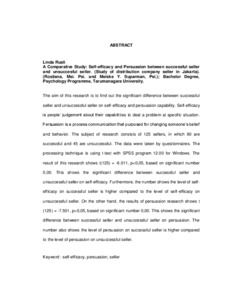 Rusli, Linda (2007) Perbandingan Self-Efficacy Dan Daya Persuasi Antara Penjual Yang Sukses Dan Penjual Yang Gagal. Studi Pada Penjual Perusahaan Distribusi Di Jakata. Skripsi thesis, Universitas Tarumanagara.