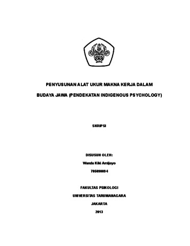 Amijoyo, Wanda Kiki (2013) Penyusunan Alat Ukur Makna Kerja Dalam Budaya Jawa (Pendekatan Indigenous Psychology). Skripsi thesis, Universitas Tarumanagara.