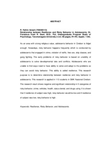 Azizah, R. Fathin (2013) Hubungan Antara Resiliensi Dengan Perilaku Berisiko Pada Remaja. Skripsi thesis, Universitas Tarumanagara.