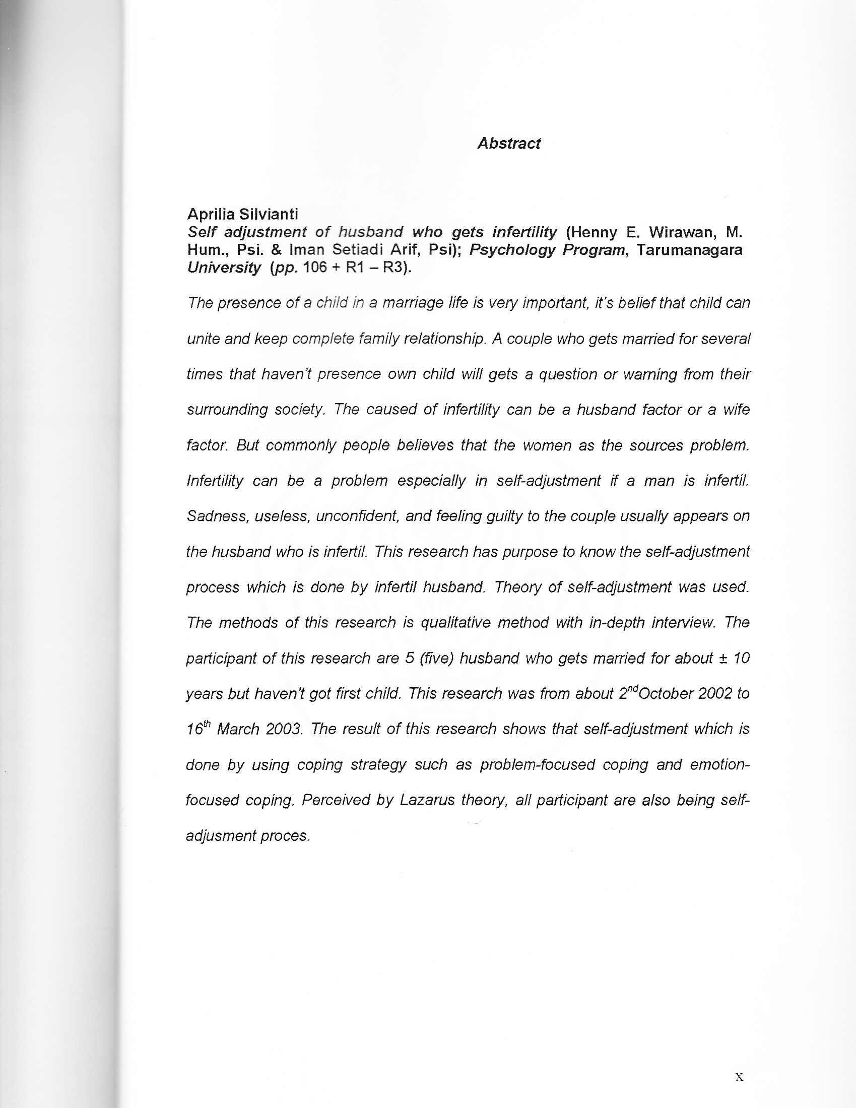 SILVIANTI, APRILIA (2003) Penyesuaian Diri Suami Yang Mengalami Infertilitas. Skripsi thesis, Universitas Tarumanagara.