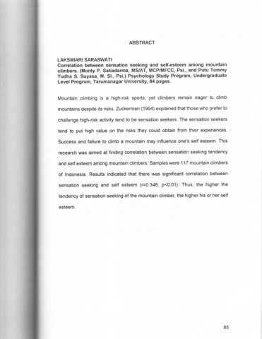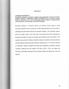 Saraswati, Laksmiari (2003) Hubungan Antara Sensation Seeking Dan Pada Pendaki Gunung. Skripsi thesis, Universitas Tarumanagara.