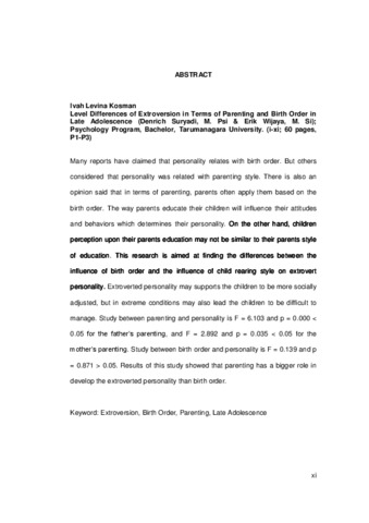 Kosman, Ivah Levina (2013) Perbedaan Tingkat Kepribadian Ekstrovert Ditinjau Dari Pola Asuh Dan Urutan Lahir Pada Remaja Akhir. Skripsi thesis, Universitas Tarumanagara.